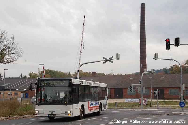 Ein großer Teil der Fahrten auf den RVE-Linien 296 und 96 zwischen Düren, Langerwehe und Eschweiler wird von Lövenich-Reisen aus Niederzier durchgeführt. Einige Fahrten der Linie 96 enden in Weisweiler an der Haltestelle "Berliner Ring", die auch der DN-L 1078 nach einer Wendefahrt durch den Bahnhof in Kürze erreichen wird... [02.11.2007]