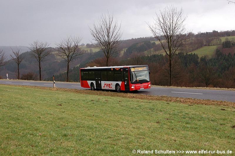 Alle Jahre wieder lassen sich an den vier Adventswochenenden zahlreiche Pendelbusse zwischen dem Zentrum des Eifelstädtchens Monschau und den umliegenden Parkplätzen beobachten, die die auswärtigen Besucher zum dortigen Weihnachtsmarkt befördern. Am 01.12.2007 bewältigt der RVE-Wagen 6101 die Steigung zwischen Monschau und Höfen vor malerischer Eifelkulisse... [25.12.2007 R.Schulteis]